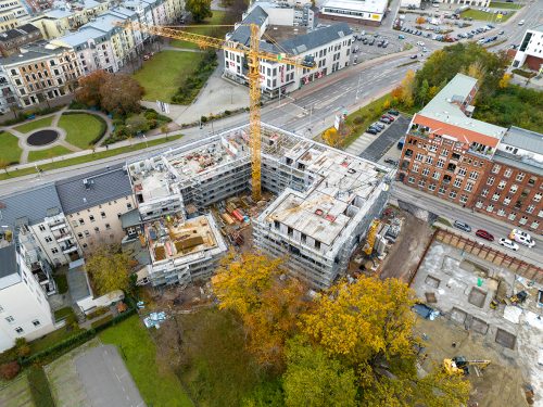 Im ersten Bauabschnitt des Projekts werden insgesamt fünf Häuser mit jeweils vier bis fünf Etagen gebaut. Es entstehen 49 moderne Wohnungen, die den unterschiedlichen Bedürfnissen künftiger Mieter gerecht werden. Das Spektrum reicht dabei von kompakten 1-Raum-Apartments bis hin zu großzügigen 4-Raum-Wohnungen. Die Wohnflächen variieren von ca. 45 bis ca. 120 m². Im Fokus stehen insbesondere Wohnungen mit einer Größe von etwa 70 bis 80 m².